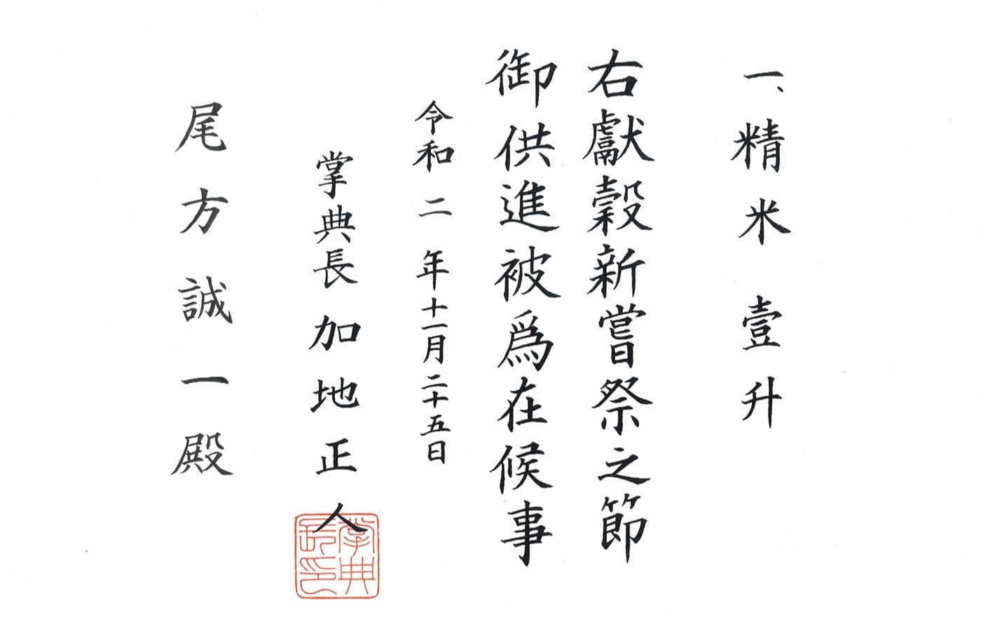「新嘗祭(にいなめさい)」に献上させていただきました。